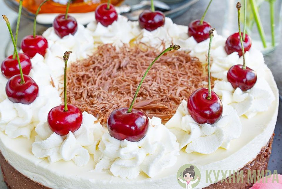7 Сделано | крем ШантильиКогда мусс стабилизируется, приступаем к финальной отделке. Холодный сливки взбиваем в стойкую массу. В самом конце добавляем сахарную пудру и перемешиваем на низкой скорости. Перекладываем крем в кондитерский мешок с насадкой и отсаживаем сливки на мусс. На каждую розетку из сливок выкладываем вишню – свежую или коктейльную. Центр украшаем тертым шоколадом. |